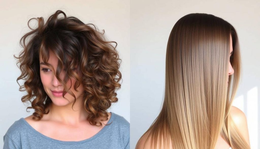 – Japanese straightening: Chemically alters hair structure for pin-straight results, often lasting longer but with more rigidity.